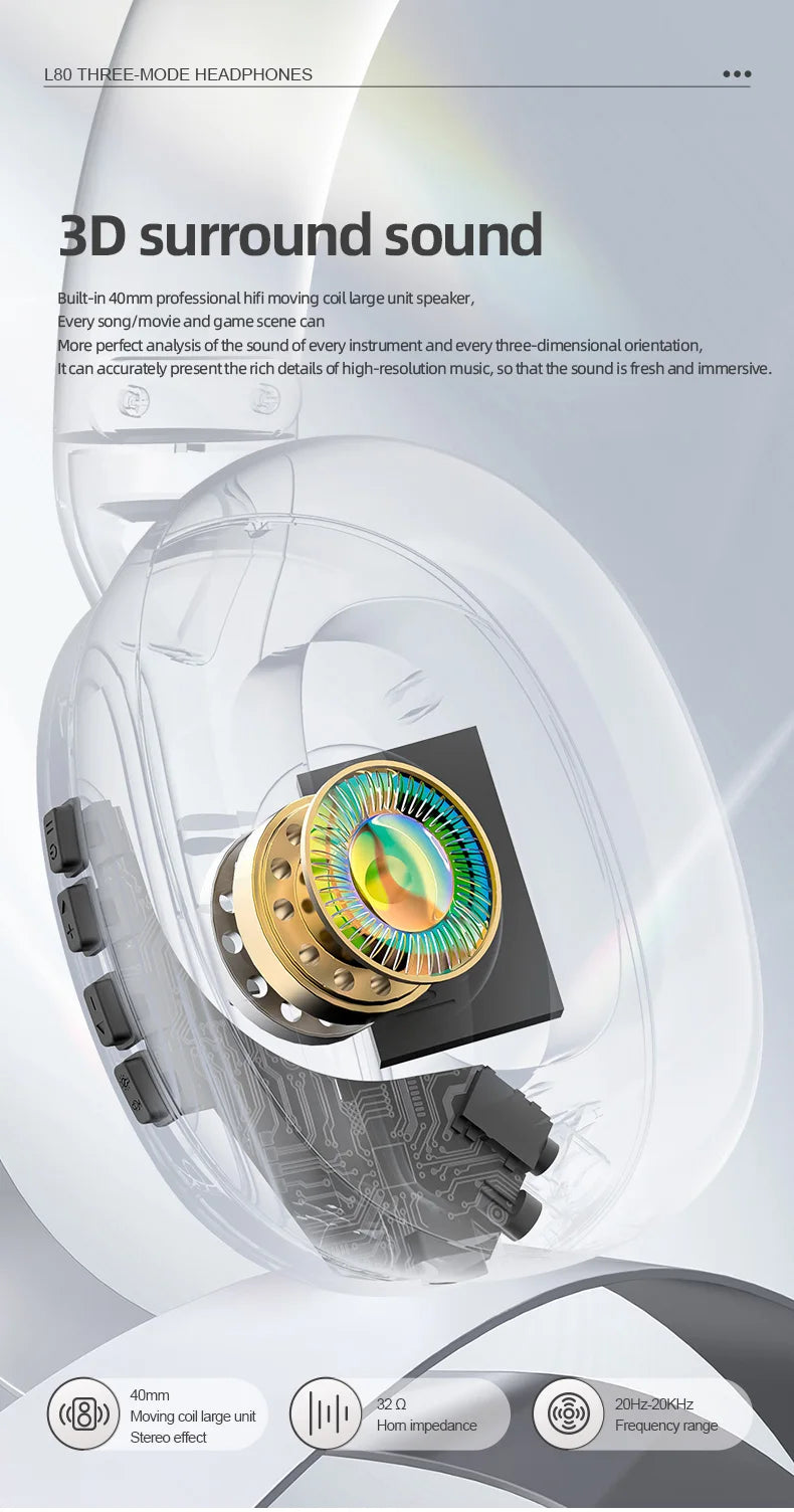 SmailWolf-L80 Bluetooth wireless three-mode headphones headset lightweight headset 2.4G gaming headsets sports bass